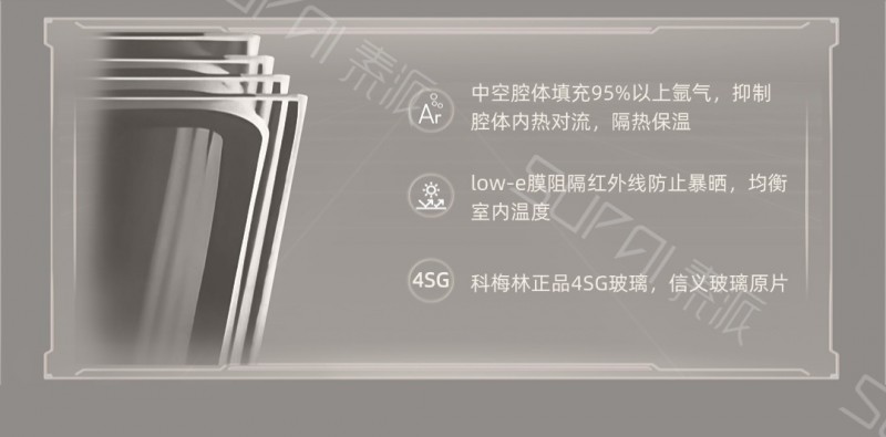 LOW-E玻璃+4SG玻璃技术,实现了1+1>2的节能聚变。素派门窗采用科梅林4SG玻璃内填充95%以上的氩气,减少热对流; 4SG柔性暖边间隔条阻隔热传导,减少能量损失,牢牢锁住玻璃边缘的热量流失通道。