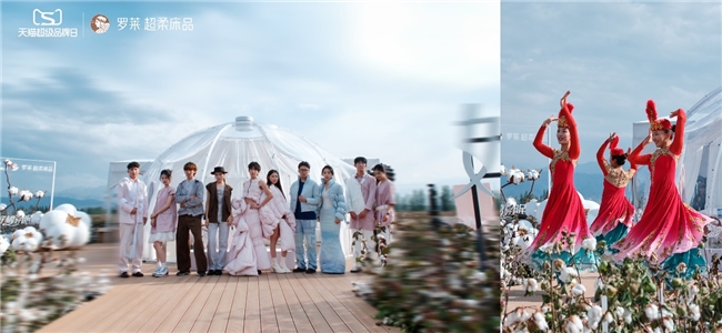 本次活动于广袤新疆棉田之中特别设置主题舞台,热情洋溢的新疆舞表演,为盛典拉开了序幕。棉田中的“星空屋”亦成为一大亮点,作为可移动超柔体验基地为未来品牌活动提供创新空间。此外,罗莱2025冬季系列时尚秀巧妙融合超柔床品与现代服装设计,通过场景化展演,令参与者直观体验新疆棉所制家纺的细腻质感与舒适体感。